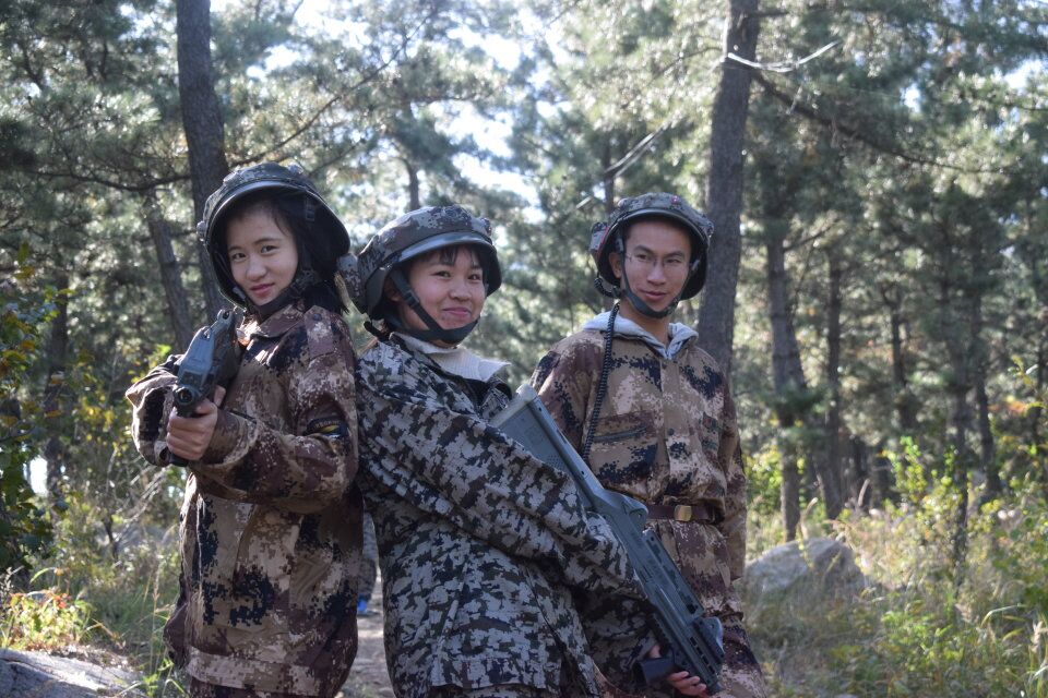 同学们来到海边迎着寒风伴着日出,进行了军体拳、展腹跳等一系列军事训练和攀爬等项目,在攀爬中同学们每一步的攀登,需要胆识和勇气,互相信任,团结协作,是信心、意志和勇气的较量。10月29日上午,活动小组为模拟实战,在户外进行了真人CS对抗比赛。