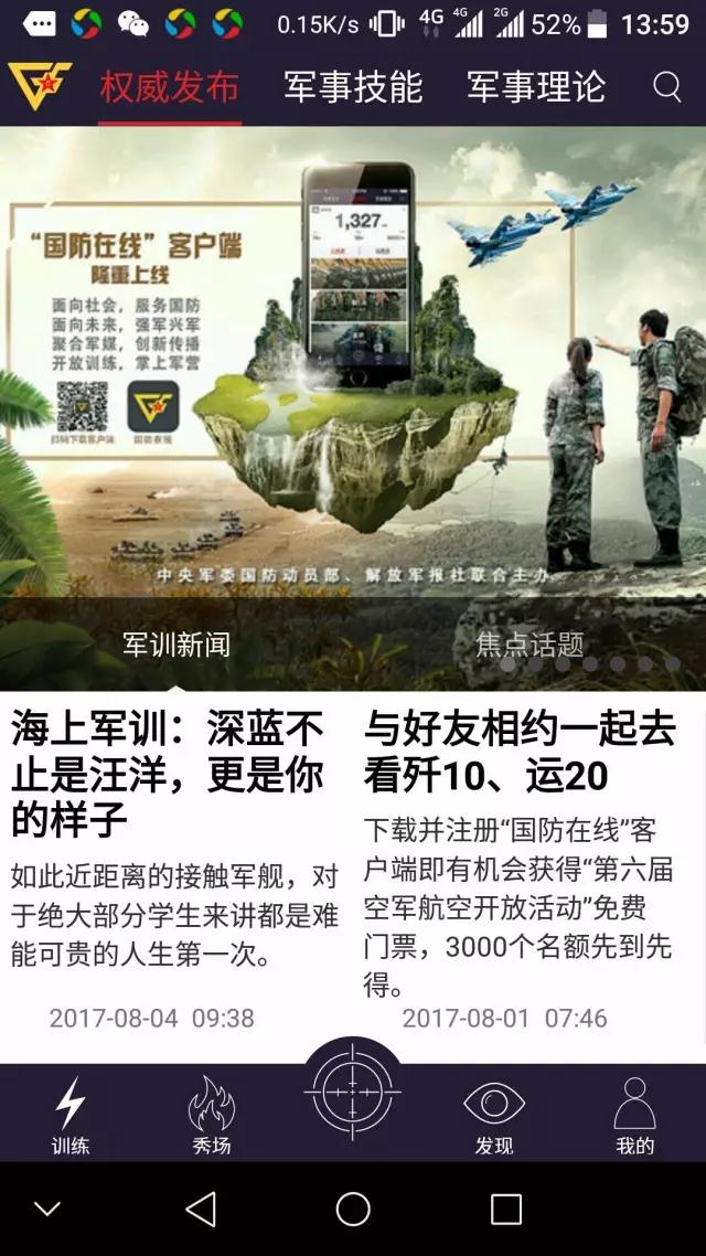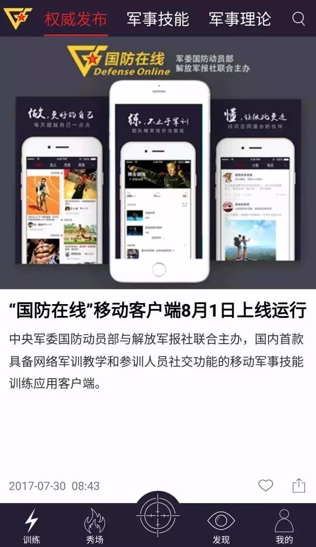军训信息权威发布app已上线,下载最新上线的“国防在线”app