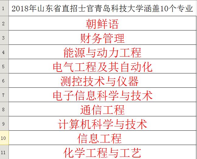 2018年山东省直招士官涵盖51个专业