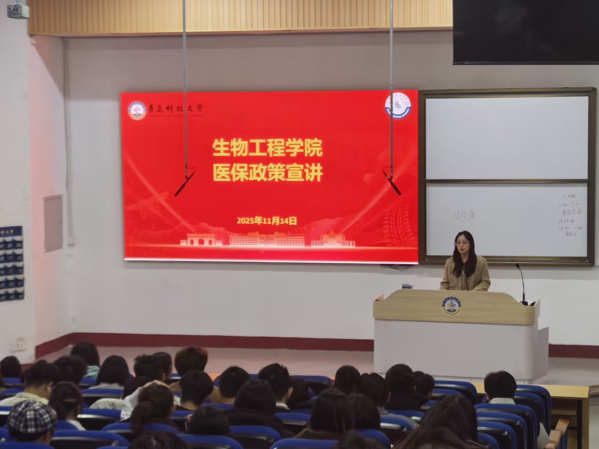 为切实保障学生医疗保障权益,帮助同学们清晰了解2026年度青岛市居民社会医疗保险参保政策与办理流程,生物工程学院于11月14日在二教101教室召开医保政策专项宣讲会。会议由2025级辅导员吕珊珊主持,2025级全体学生参加宣讲。