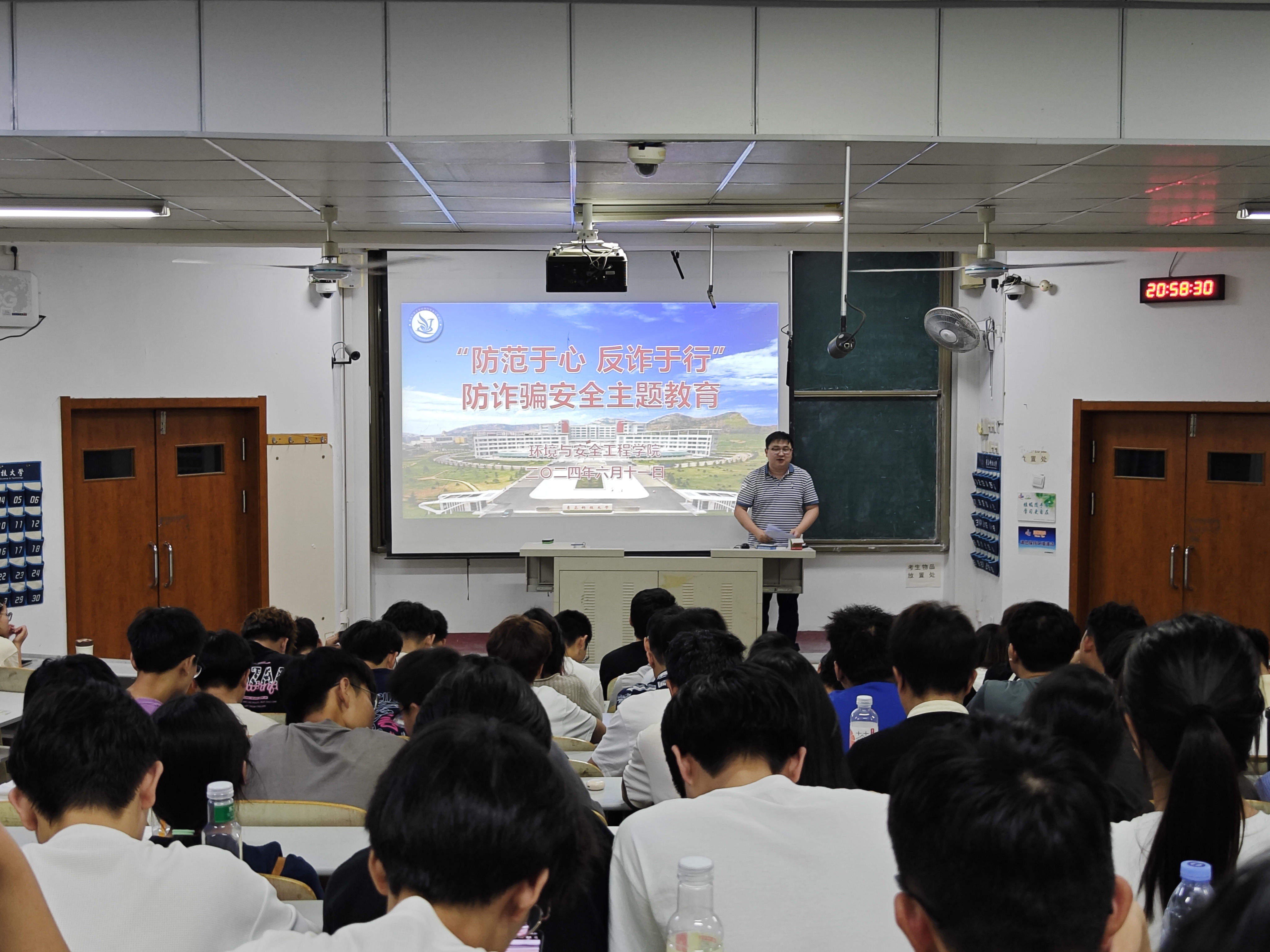组织召开“防范于心 反诈于行”防诈骗安全主题教育,结合身边人、身边事开展警示教育,并传授防诈骗小技巧,同时加强线上经常性教育、提醒,引导学生提高防范意识,抛却“讨利”之心,躬守踏实之行,严防金融诈骗、电信诈骗、不良校园贷及培训贷等。