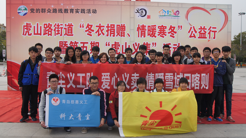 11月8日,由青岛12349社区便民服务中心主办、青岛电视台QTV-4协办的“冬衣捐赠、情暖寒冬”公益行活动在李村广场举行。伟德国际1949官网、中国海洋大学等驻青高校的志愿者参加此次公益活动。