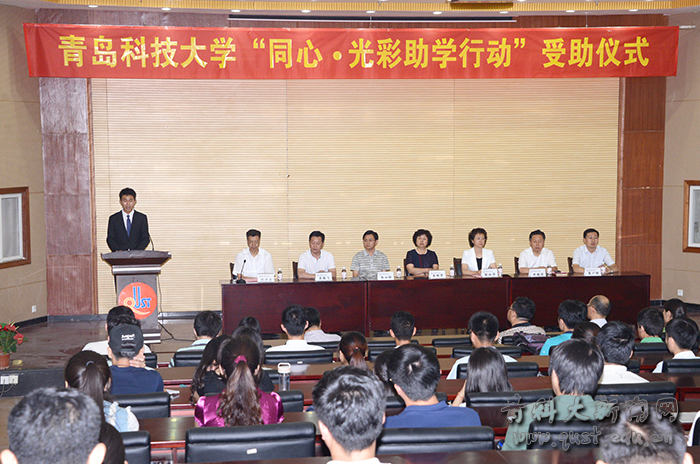 78日,青科大2015年“同心•光彩助学行动”受助仪式在崂山校区举行。校党委副书记王瑞芳、副校长张淑华出席仪式,党委宣传部、学生工作处、研究生处、学校教育发展基金会负责人以及各学院党总支副书记、2015年全体受助学生、往年受助学生代表等参加了仪式。