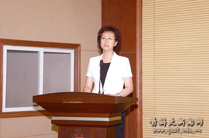 张淑华在讲话中代表学校感谢省委统战部、泛海公益基金会和山东省光彩事业促进会对青科大家庭经济困难学子的关心和关爱,并对受助学生提出了四点希望:一是志存高远、坚定信念,把个人奋斗目标同国家社会的需要结合起来,做有理想、有抱负的青年人;二要勤于学习、敏于求知,用辛勤和汗水铺洒成长成才之路,做全面发展、学有所成的优秀大学生;三要战胜磨难、阳光成才,以百折不挠的坚强意志,做自己前途命运的创造者;四要心怀感恩、回报社会,用自己的实际行动,做传递爱心与奉献正能量的忠诚使者。