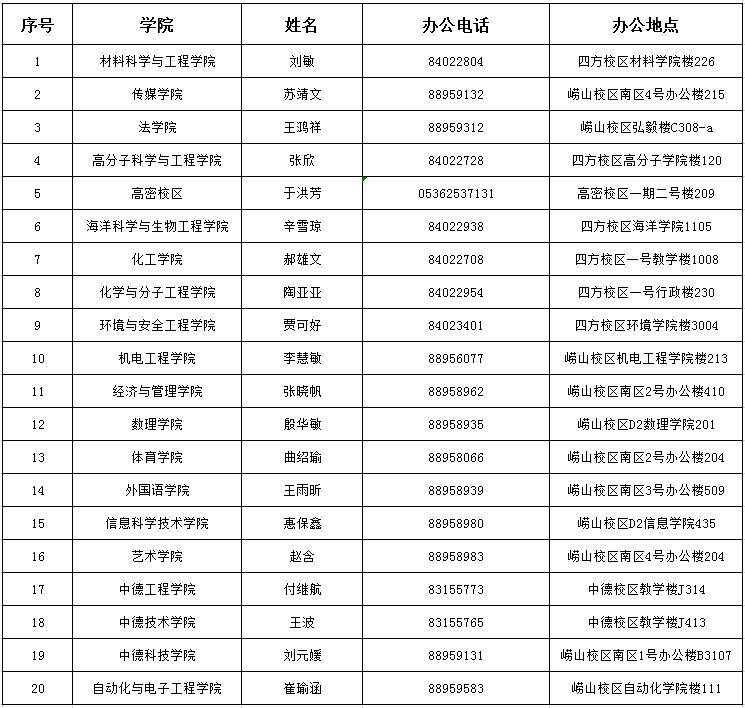 各学院学生资助工作联系人信息表(2019年9月)