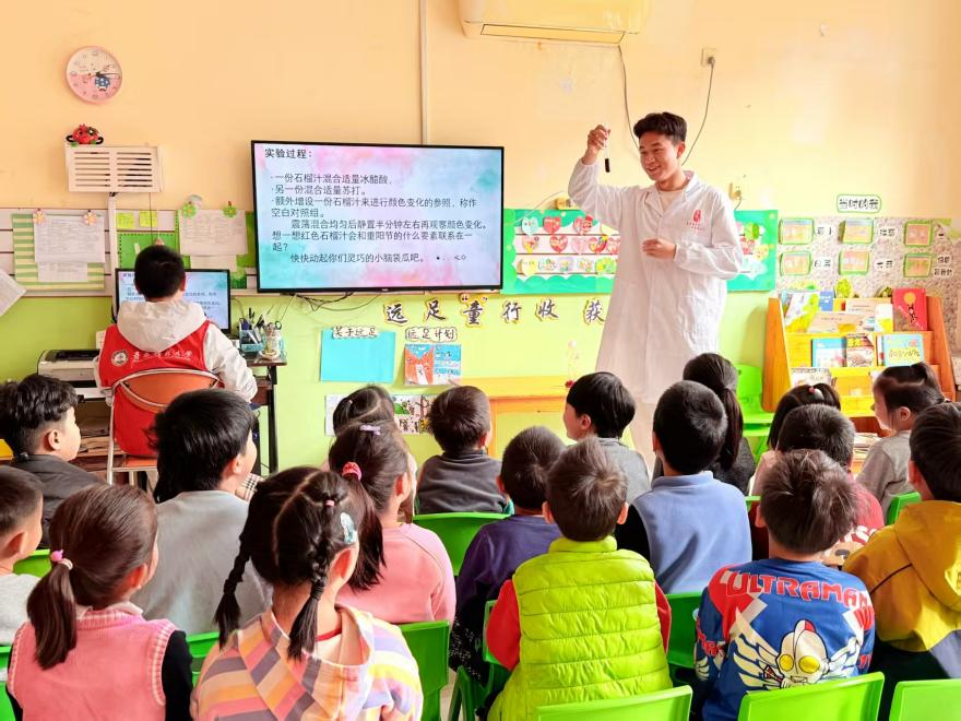 活动前期,“心视野”志愿服务队精心筹备:对接通榆路幼儿园确定场地与人员,备好实验及手工材料并调试石榴汁实验流程,还结合心理知识设计儿童引导环节,为科学探索与孝亲教育的融合及活动顺利开展筑牢基础。