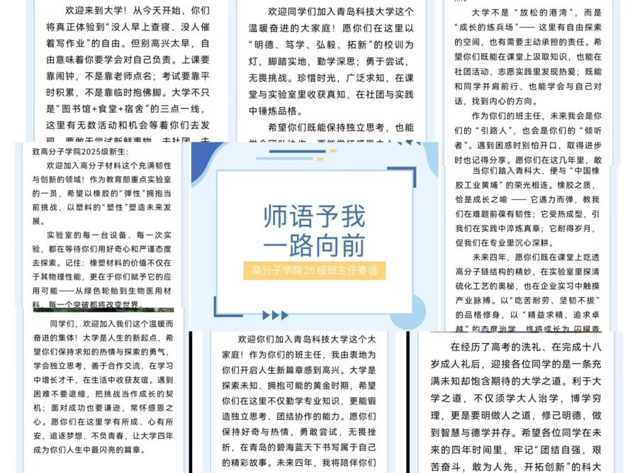 老师们为同学亲自写下真挚的祝福与期盼,从各个角度出发,帮助同学们找到自己的方向。通过简朴的方式用心对待每一位学生,塑造了学院老师们负责,对教育职业热爱的形象。将单一奉献的句读演变为立体的谆谆教诲,成为学生“亲密的伙伴”。