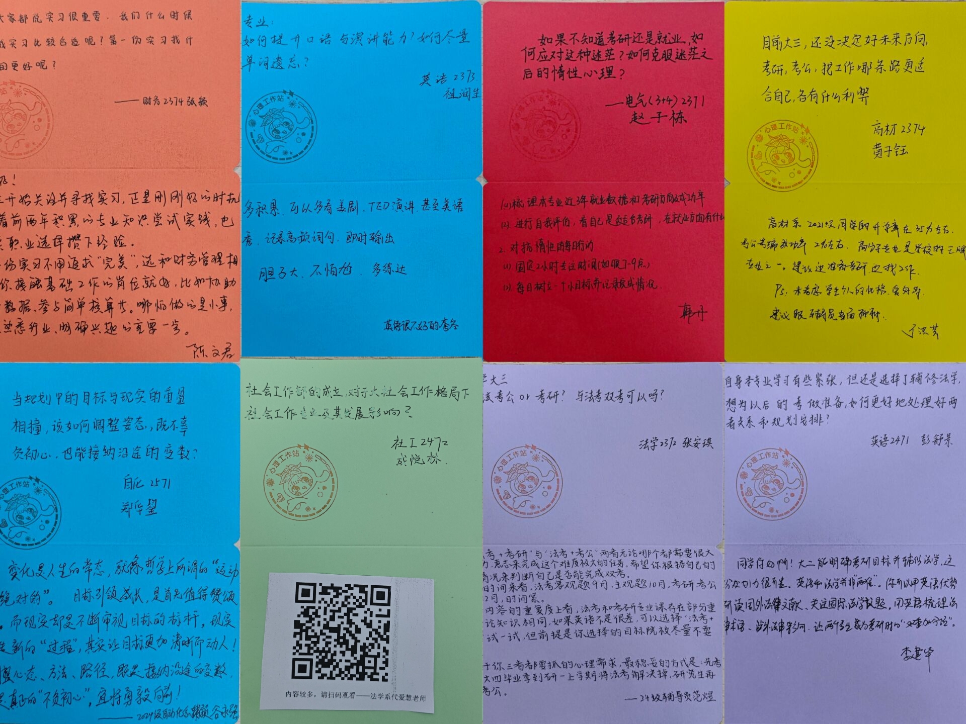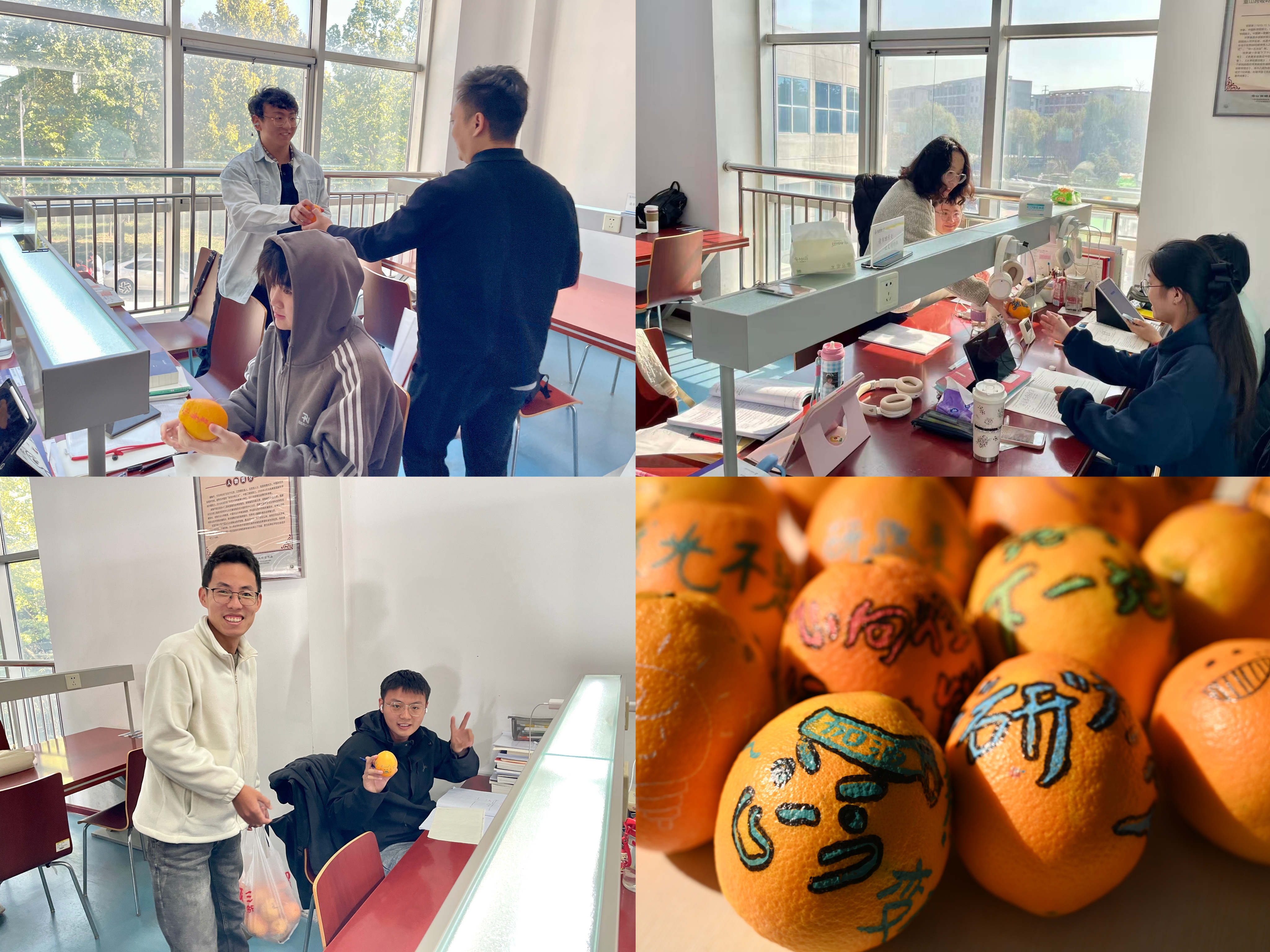 “研途送暖意,赠言助远航”活动精准对接关键期心理需求。在考研冲刺与求职攻坚的重要节点,10月21日至22日,辅导员老师为备考学子送上寓意“心想事成”的定制橙子与手写加油卡,字句叮咛里满是温暖的支持与鼓励;招聘会现场,师长的经验分享与同窗的真诚祝愿被打包成毕业生的“心理行囊”,让前行路上的焦虑在集体关怀中消解。