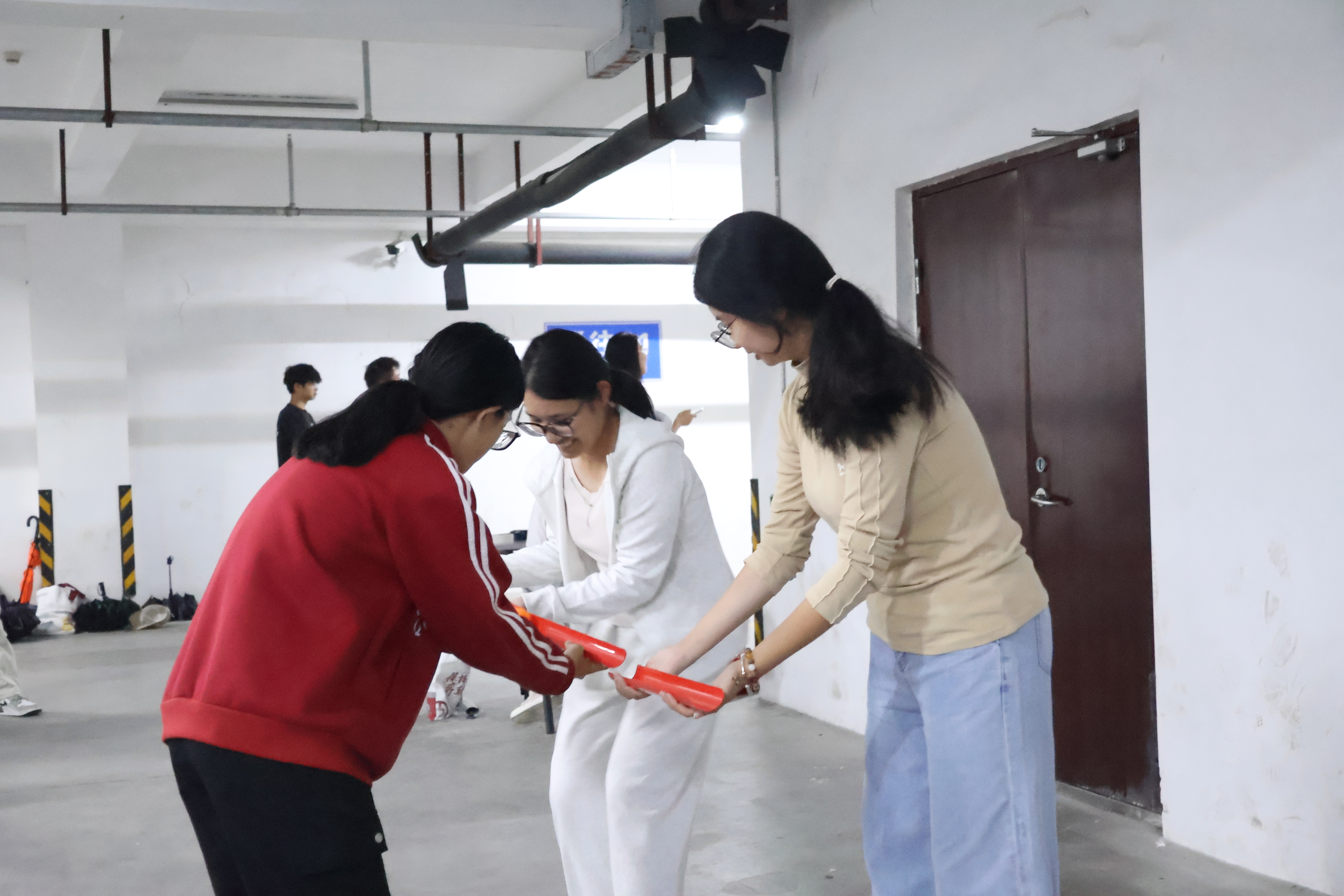 活动设置“三人四足”“呼啦圈传递”“乒乓球接力”三大特色项目。在“三人四足”赛场,参赛学子通过绑腿协作、口号同步,在从步伐错乱到默契配合的蜕变中,展现出了极强的团队凝聚力与协作精神;“呼啦圈传递”环节,学子们手拉手围成圆圈,在不松手前提下通过身体晃动完成接力,既考验配合度又充满趣味挑战;“乒乓球接力”项目则要求参与者手持轨道托举球体,在保持平衡的同时完成交接,专注的神情与敏捷的调整尽显协作智慧。