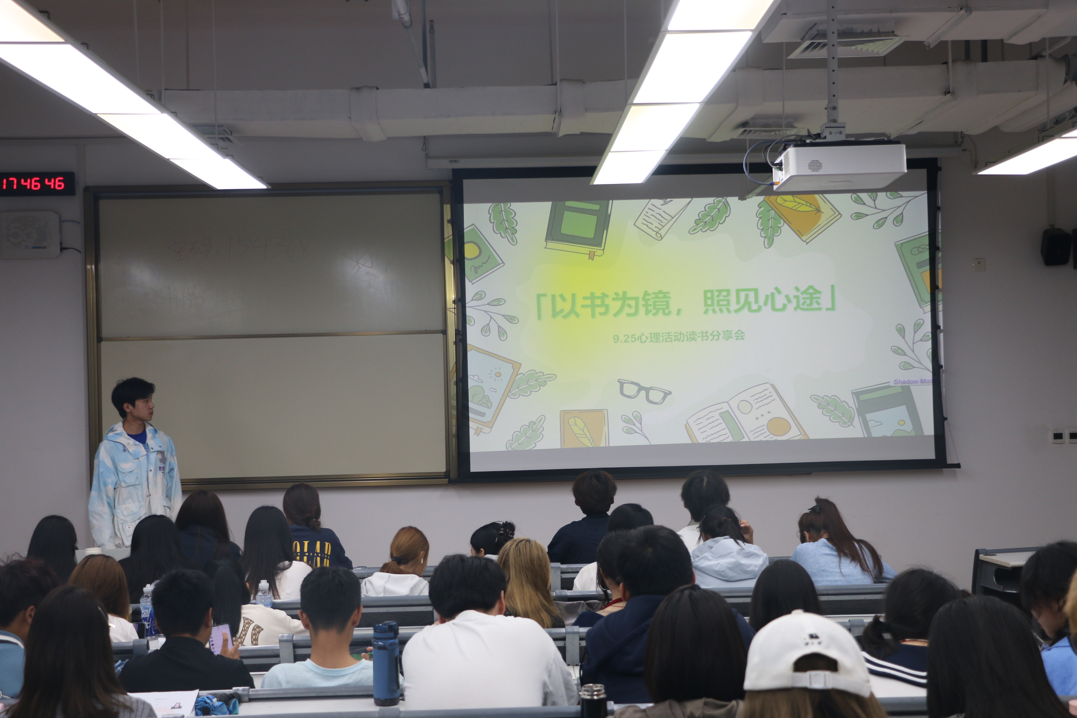 活动伊始,主持人开宗明义,点明活动主旨:“大学不仅是知识的殿堂,更是人格成长与心灵成熟的关键时期。我们希望通过‘以书为镜’的方式,让同学们在经典心理学书籍的智慧中,照见自己的内心世界,找到应对挑战、超越自我的勇气与方法,照亮大学新征程的‘心’路途。”