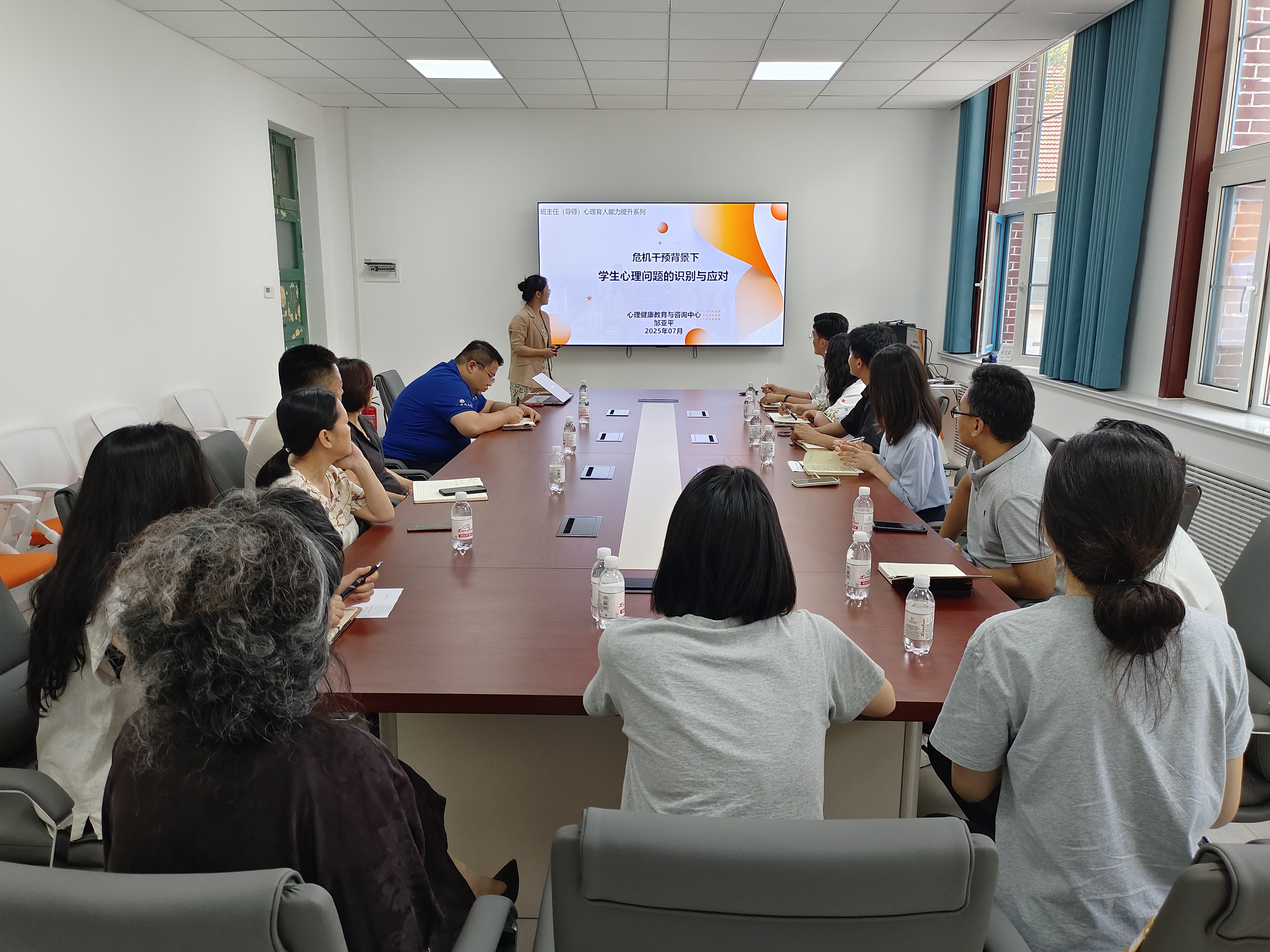 7月17日,化学院在一政219会议室开展教师队伍心理健康教育培训会。会议由学院心理工作站站长马晓风主持,特邀学校心理健康教育与咨询中心邹亚平老师主讲,学院党委副书记刘尧、各年级班主任和研究生导师代表以及全体辅导员参加本次培训。