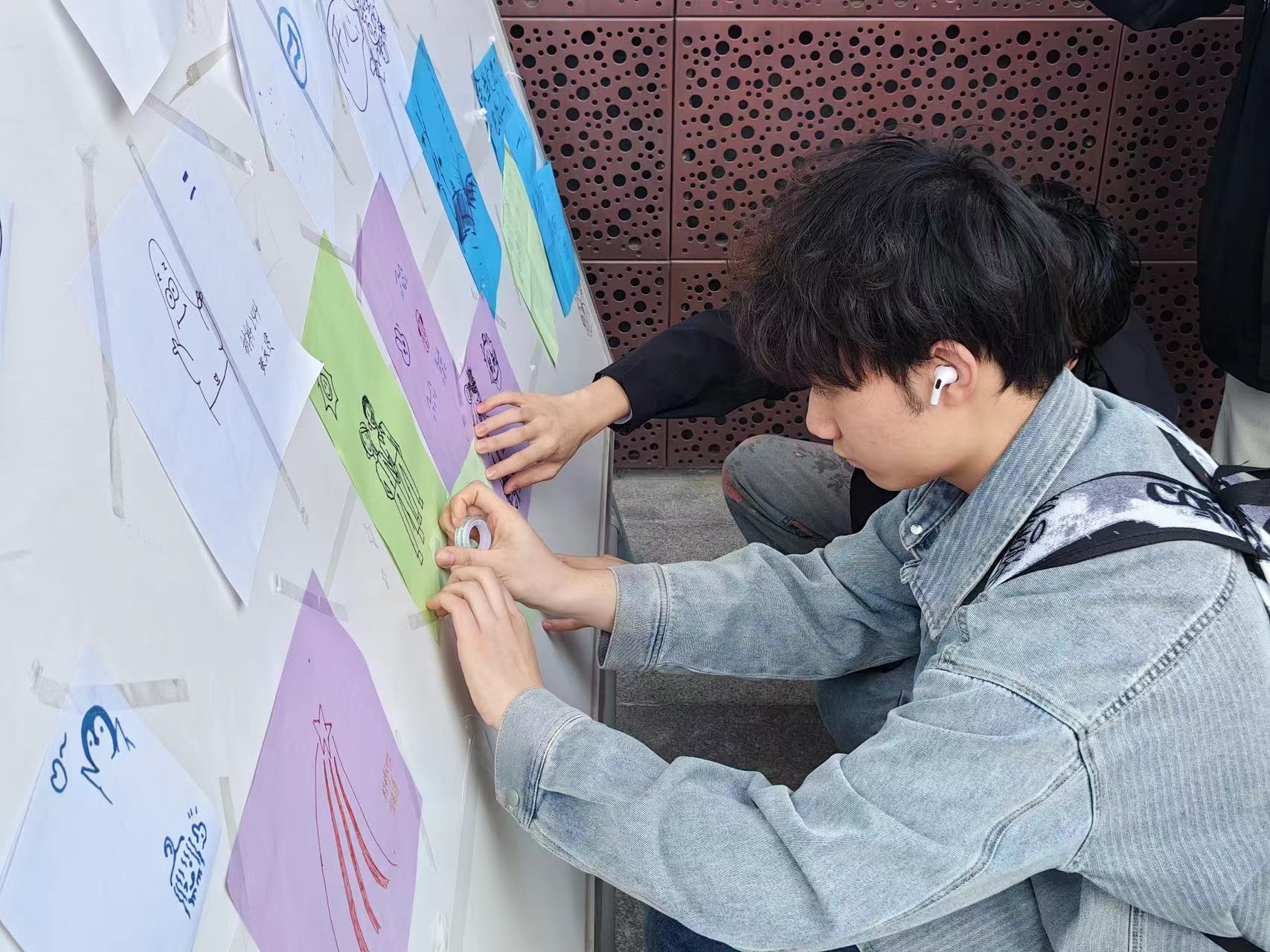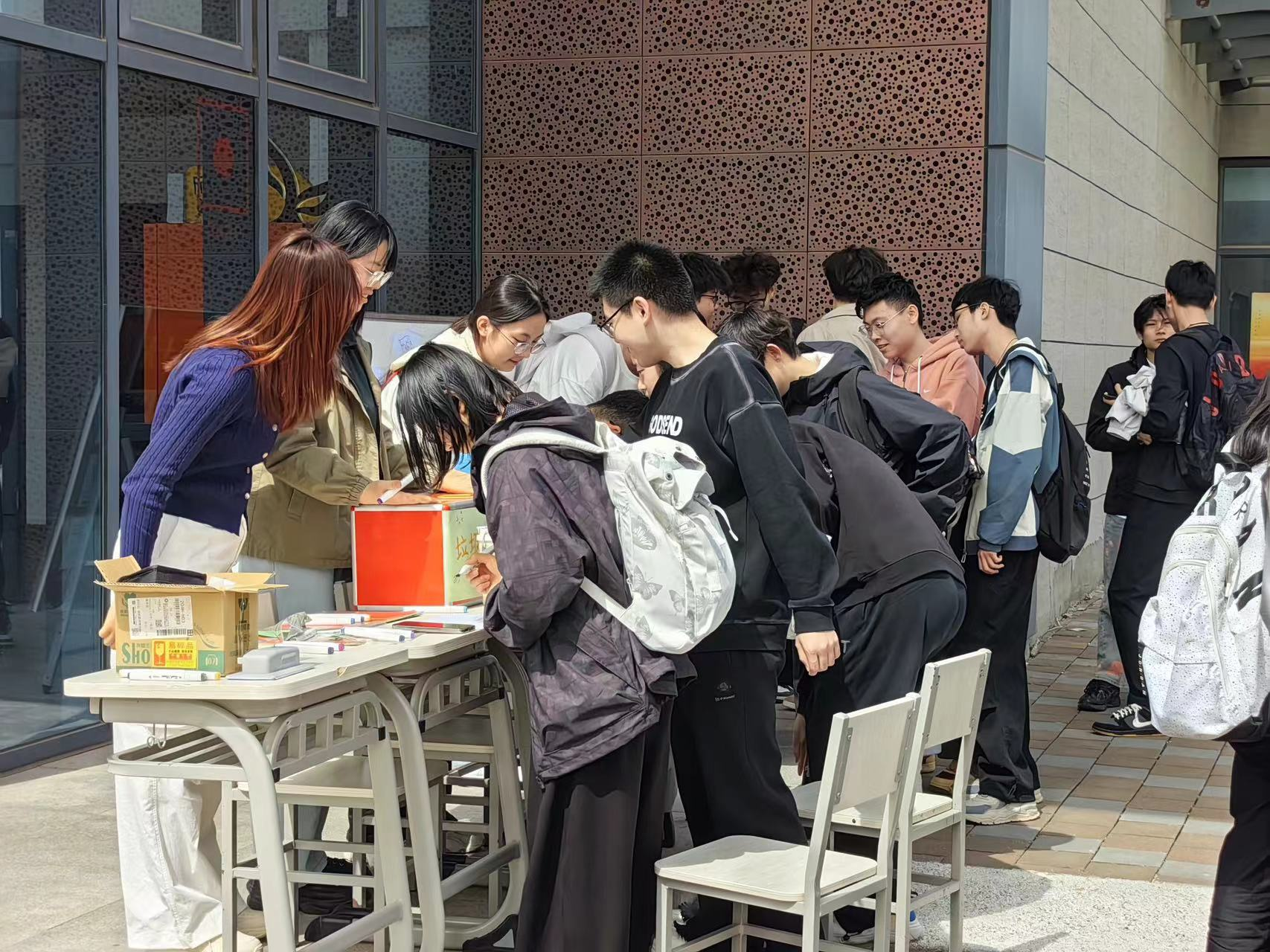 此次 3.25 心理活动它鼓励同学们正视自己的情绪,无论是积极的还是消极的,都给予了它们合适的 “容身之处”。活动期间,参与的同学络绎不绝,现场气氛轻松活跃。通过绘画与心事倾诉等互动,加强了同学们之间的情感共鸣,让大家明白,在校园这个大家庭里,每个人都有着关于自己的喜怒哀乐,我们可以相互理解、相互支持。在这里,我们看见同学们将心事纸条化作流星,坠入特制烦恼箱与快乐储蓄罐,分享自己的喜悦与烦恼。涂鸦笔碰撞灵感,同学们拿起画笔,在纸上尽情创作,让展板生长出会呼吸的情绪森林。有人把小确幸写下,目送它进入Spaß箱,用七彩漩涡包裹压力,在画布角落写下“明天会更好”。