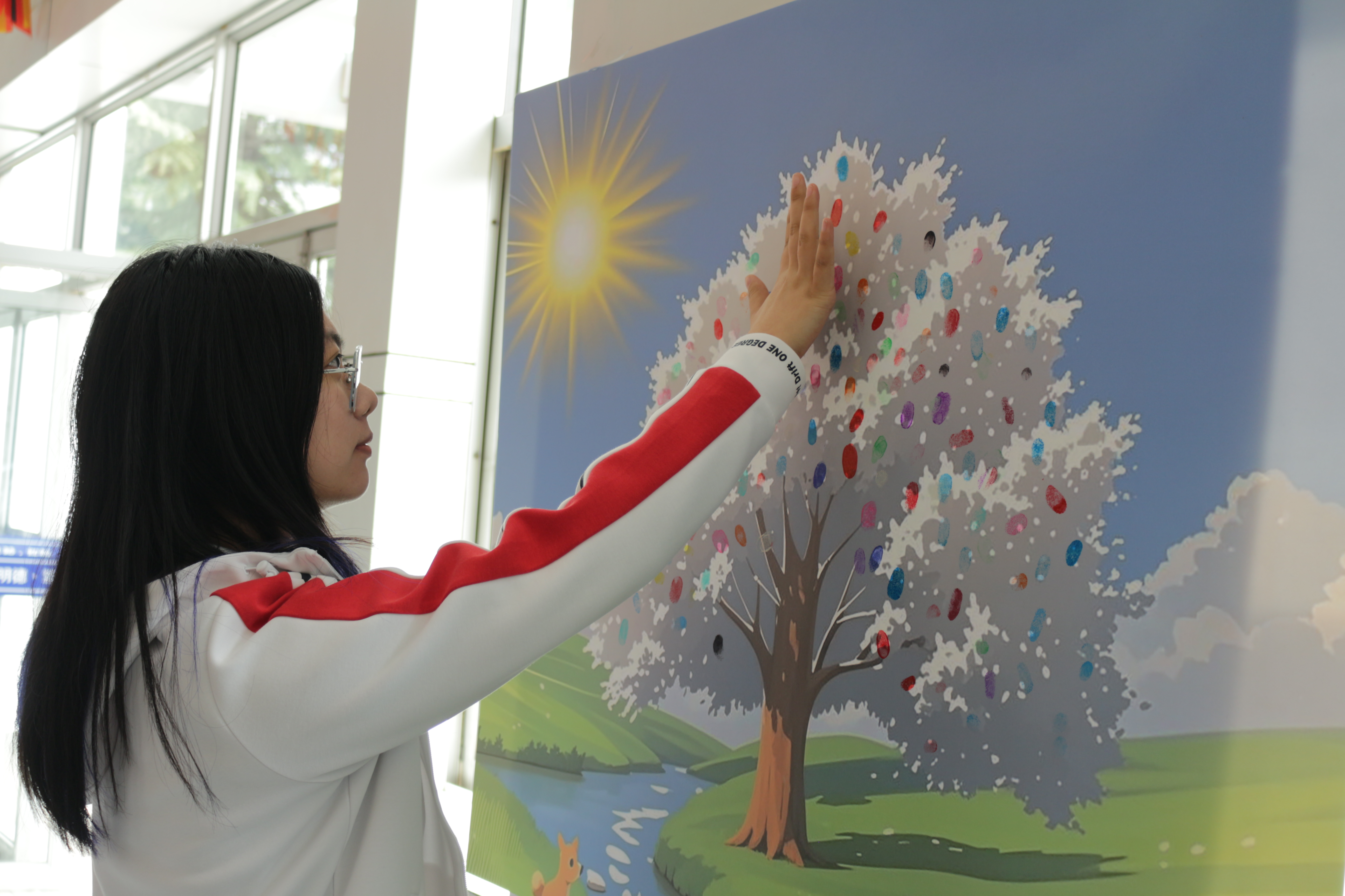 3月25日,学院开展了“指纹生命树”集体创作活动,学生们蘸取彩色印泥,以指纹为叶,共同绘制出一幅枝繁叶茂的森林画卷。这一活动不仅展现了个体的独特性,也体现了集体的共生性,让学生在共同创造美、表达爱的过程中,不断探索自我价值,深刻感知集体的重要性。