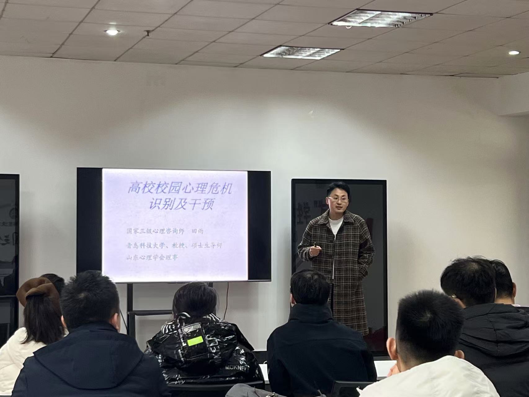 为进一步提升学院心理健康工作水平,加强教师队伍对高校校园心理危机的识别和干预能力,12月13日下午,艺术学院在崂山校区学业发展中心开展了教师队伍心理健康工作培训会。本次培训会邀请到了马克思主义学院田雨教授担任主讲嘉宾,各年级班主任、研究生导师以及全体专兼职辅导员参加培训会,会议由艺术学院学工办主任颜枫主持。
