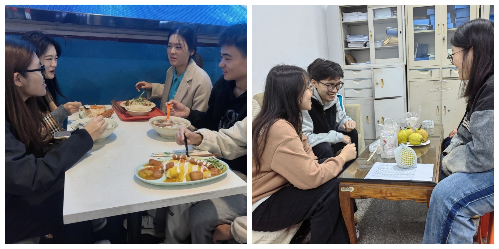 研究生辅导员徐鑫、大二辅导员刘涛与学生开展温馨午餐会。师生们围坐在一起,共享美食,畅谈人生,同学们纷纷分享着自己的生活点滴,师生们在忙碌的学习生活间隙进行放松和交流,充分增进彼此的了解和信任。