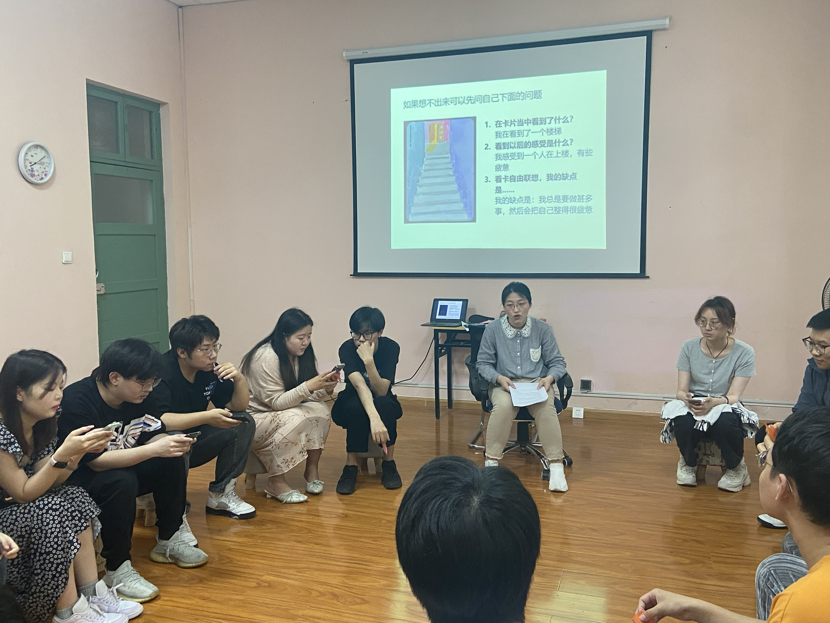 此次人际关系团辅共分为四个单元,“有缘相识”“积极自我介绍”“缺点模型”“缺点解读”。活动引导大家体验主动交往的乐趣,在交流中发现共同爱好,寻找志同道合的朋友,利用OH卡发现潜意识下的缺点,通过朋辈间的互相支持全面看待自身缺点,与缺点和解。