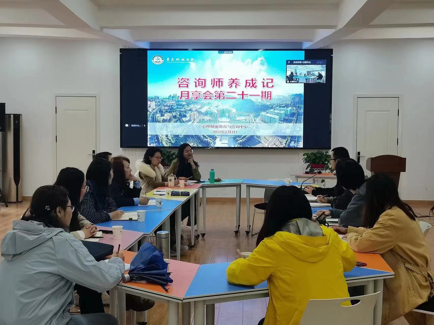 5月4日,为持续促进心理咨询师的专业技能,更好的开展心理咨询服务,一月一期的咨询师月享会如期举行。会议邀请了山东师范大学教授徐夫真担任督导师,采用线上线下相结合的方式举行,由心理中心主任李海玲主持,全体专兼职心理咨询师16人参加了会议。