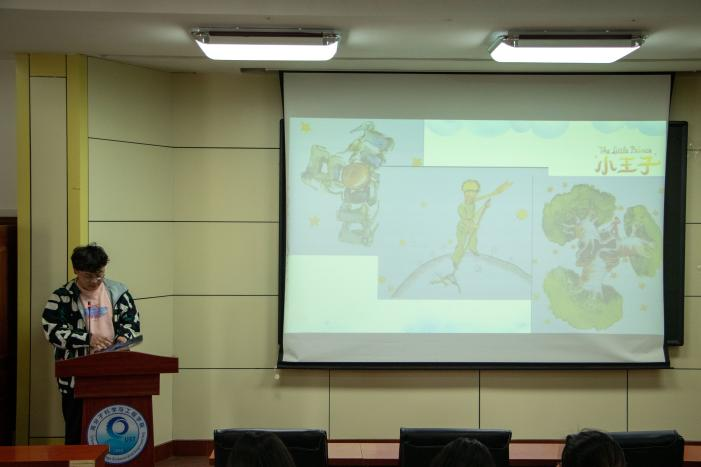 在简单的交流小游戏后,参与成员熟悉了彼此,大家共同品读经典书目《小王子》,这是一本写给成年人关于生命与生活,爱与责任的故事。大家轮番领读,相互带领彼此走入了小王子的童话世界。领读结束后,学生代表上台发表了感受,书中将爱与责任不断的领悟升华,表现出的对人生本真的坚守,对温情的向往、人与人交往之间的真心与情感令同学们感动。随后同学们共同进行了拓展卡牌游戏,大家通过语言的描述还原了一连串的有趣故事,通过实际的体验感受到了同伴之间交流的重要性。