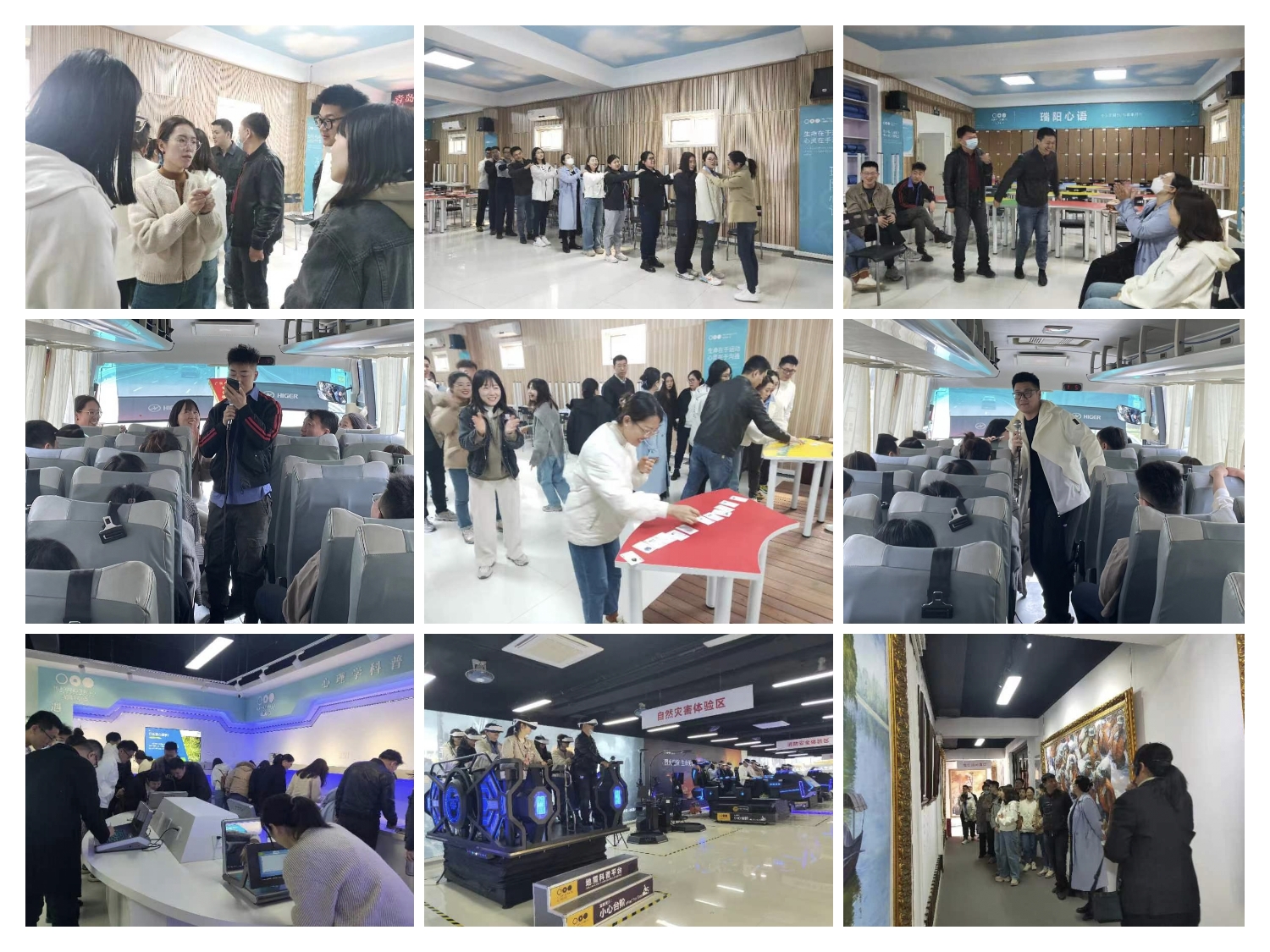 教练用简单的暖身游戏活跃了团队气氛,拉近了距离,锻炼大家反应能力的同时,让大家暂时从繁杂的工作中解放出来。“寻找扑克牌”游戏鼓励成员勇敢尝试,在试错中找到最佳行动方案,为高效处理问题奠定基础。“盗梦空间”游戏从多个方面考验着团队成员们,如沟通方式、系统思维、过程管理、信息整合,是一项提升团队协作和凝聚力的素拓项目。大家在教练的引导下,感受到了沉浸式体验的乐趣,也收获了团队建设的秘诀。最后还体验了VR仿真模拟训练,欣赏了3D油画展厅,游览了网红旅游景点打卡地风景,进一步愉悦身心、纾解压力。