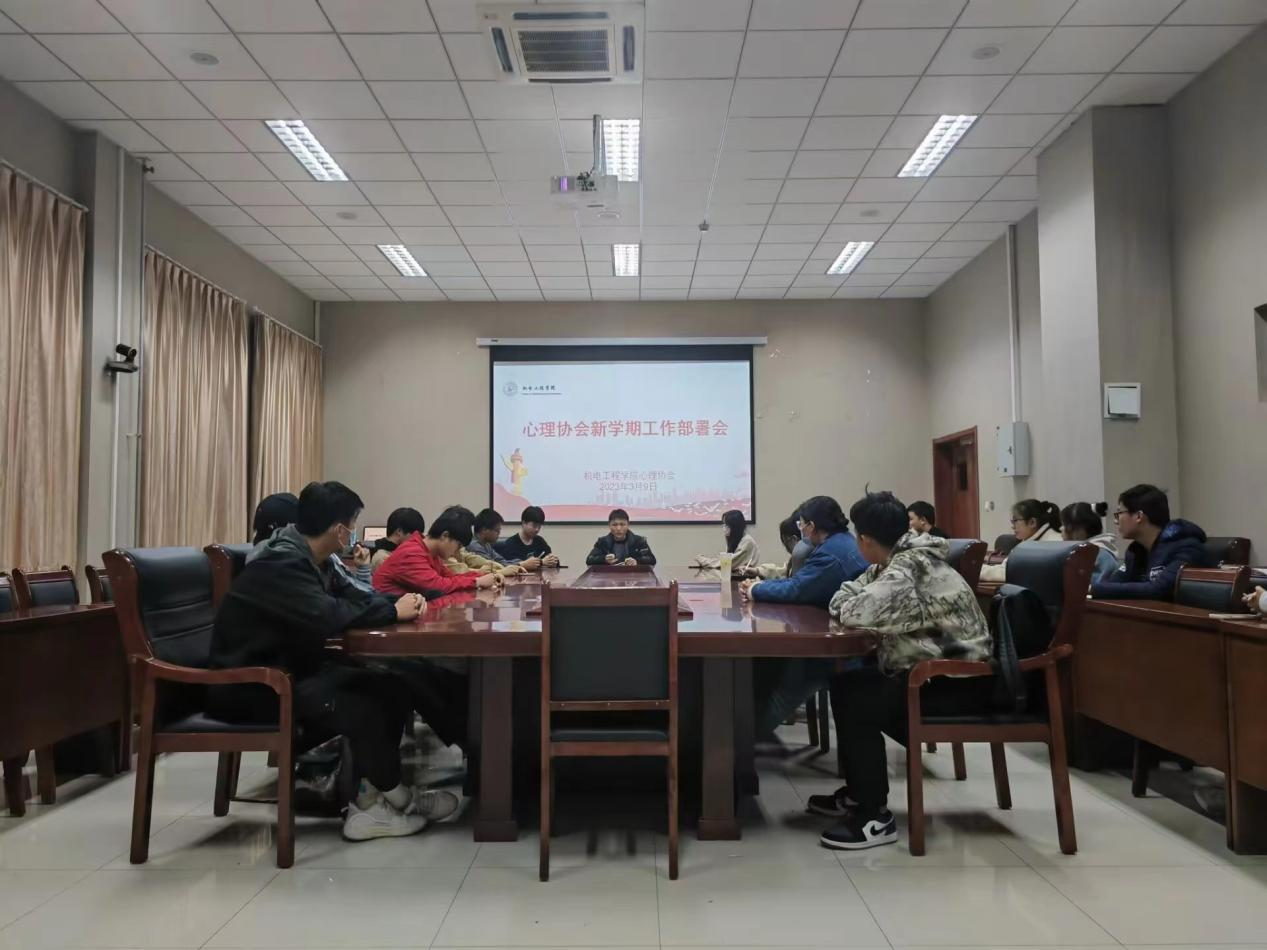 新学期伊始,为进一步做好学院心理安全稳定工作,做好新学期心理协会工作的安排,扎实推进学生的心理服务工作 3月9日晚,学院心理协会在机电楼518会议室召开了“新学期工作部署会议”。心理协会全体成员参加。
