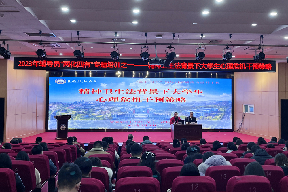 为深入贯彻落实《高等学校学生心理健康教育指导纲要》,扎实推进辅导员素质能力提升,提高学校心理育人工作水平,2月28日上午,学校邀请中南大学心理健康教育与咨询专家唐海波教授,面向全体辅导员开展了题为《精神卫生法背景下大学生心理危机干预策略》的专题培训。学校党委常委、副校长丁林出席会议。培训会由党委学生工作部副部长曹永俊主持。