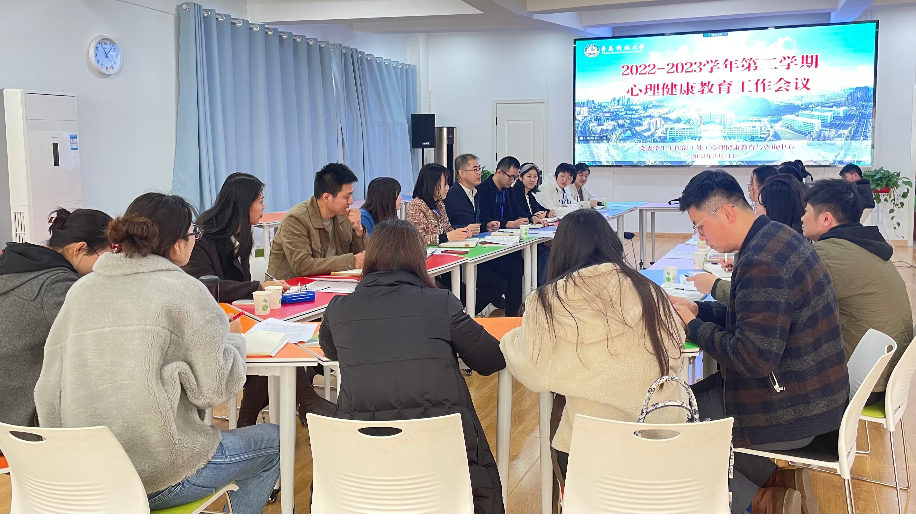 为进一步贯彻落实《高等学校学生心理健康教育指导纲要》文件要求,扎实开展新学期心理健康教育工作,3月1日上午,2022-2023学年第二学期心理健康工作会议在崂山校区心理团辅室举行。党委学生工作部副部长曹永俊、心理中心专职教师、各学院(校区)心理工作站站长23人参加了会议。