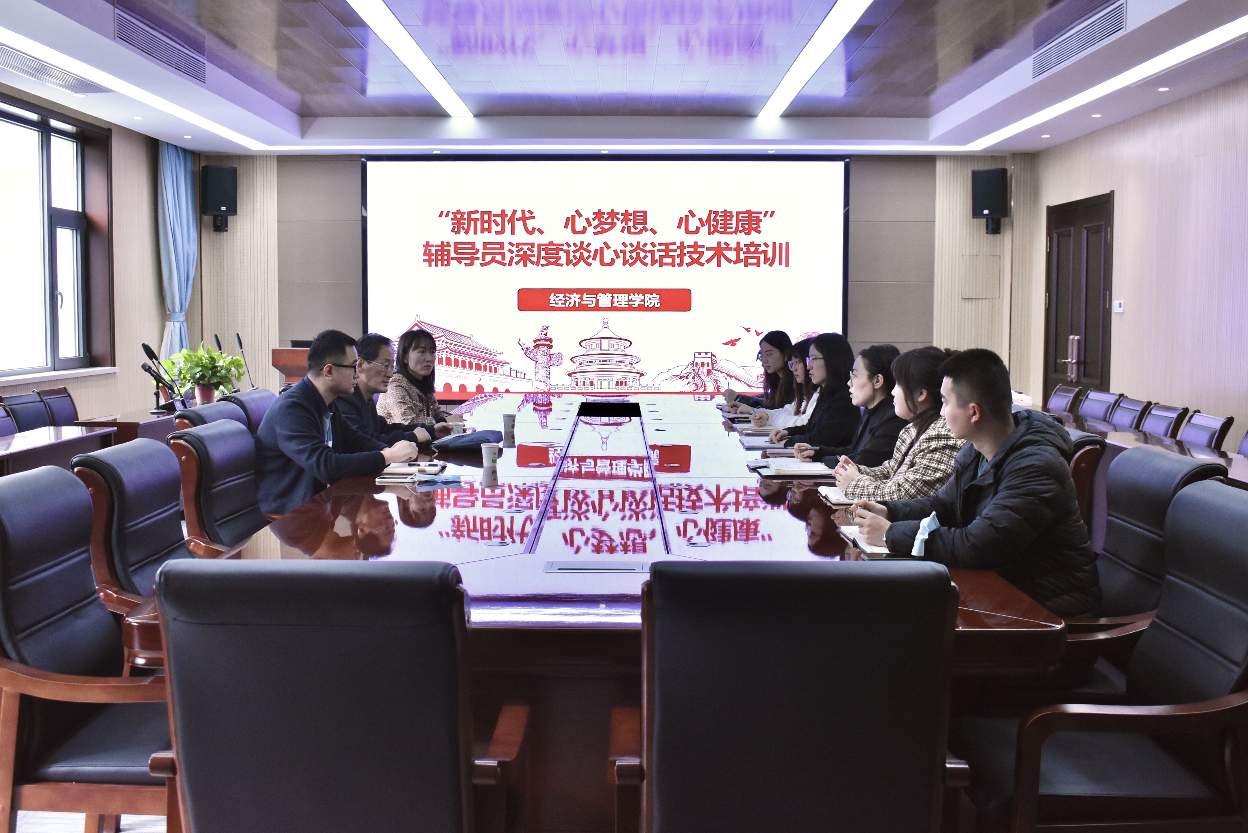 为深入学习贯彻党的二十大精神学习,落实立德树人根本任务,强化学院矩阵化辅导员队伍体系建设,进一步提升学院学生工作队伍的心理健康辅导能力,11月24日上午,经管学院于经管楼313会议室组织开展“新时代、心梦想、心健康”辅导员深度谈心谈话技术培训会,学院党委书记李德成出席会议,培训会邀请伟德国际1949官网心理中心主任李海玲、专职咨询师王岳飞主讲,学院全体辅导员参与本次培训会。