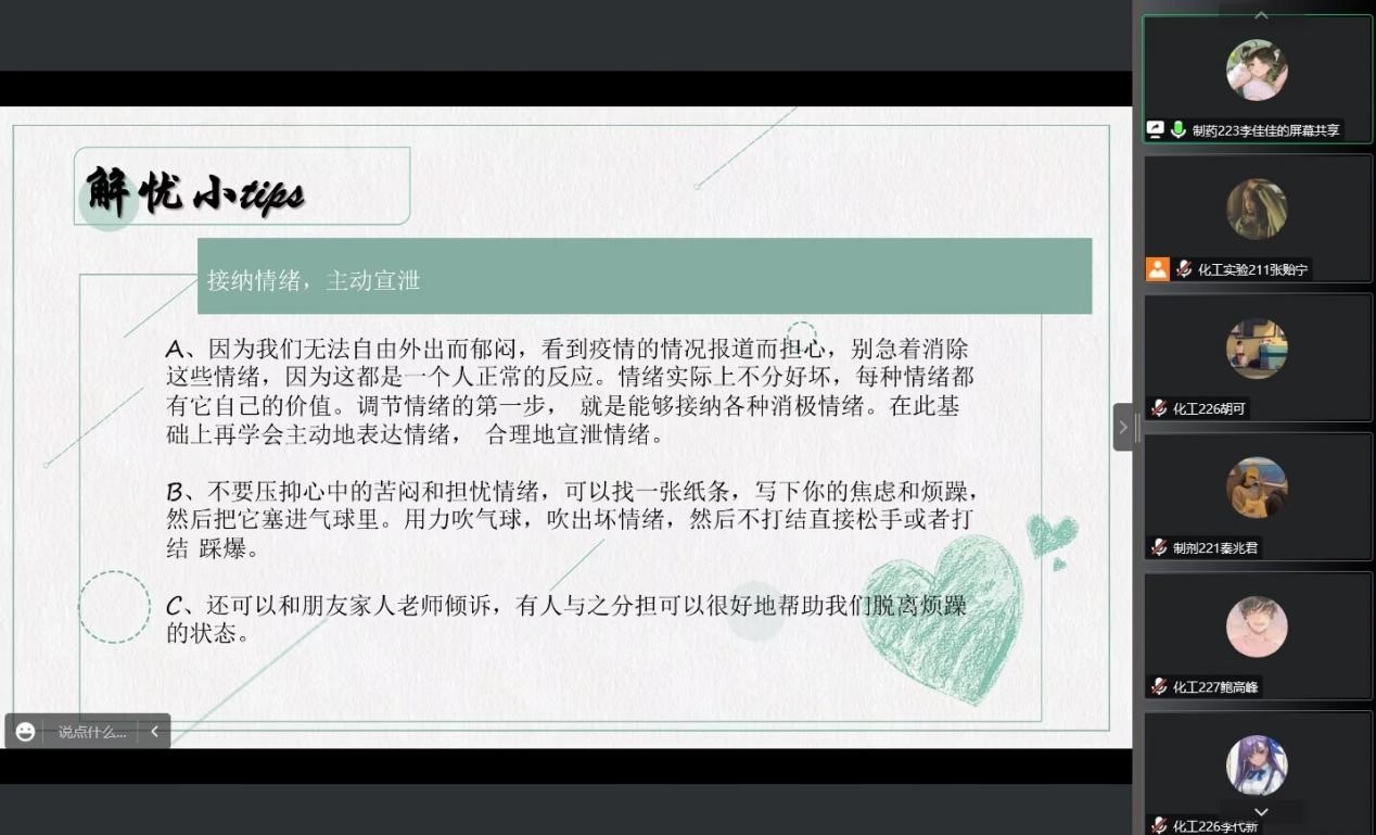 化工学院举办“展示阳光心态,坚定抗疫信心”朋辈小讲堂活动