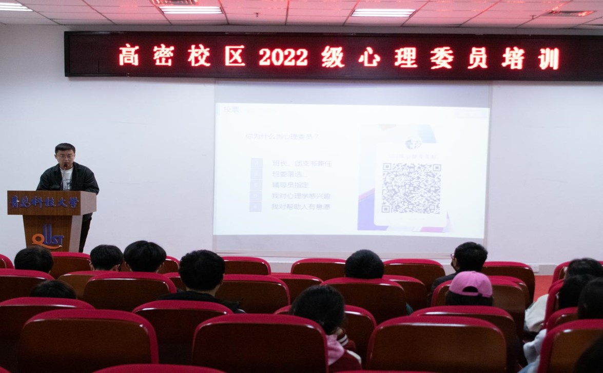 为加强班级、宿舍层面的心理工作建设,提升2022级班级心理委员助人自助能力,掌握解压及沟通技巧,发挥心理委员作用,10月27日晚,在图书馆东报告厅进行2022级心理委员培训。
