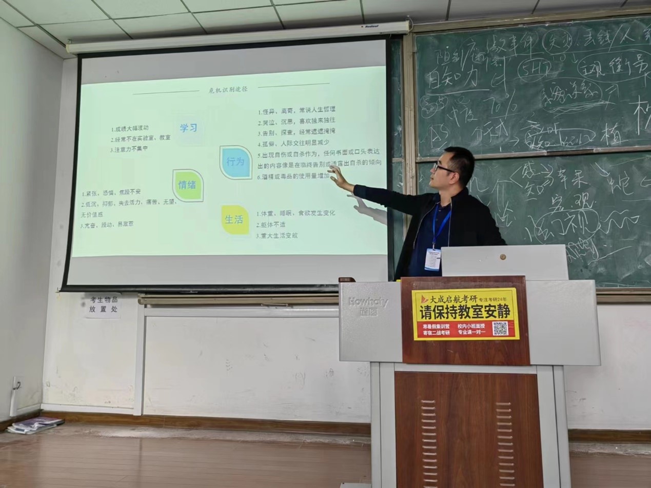 本次培训主要围绕四个方面具体明晰了心理委员、心音使者的角色定位和工作职责,通过理论与案例相结合的方式帮助心理委员、心音使者在日常工作中提高朋辈互助能力,化解潜在心理危机。老师们首先就学校心理中心的基本情况和工作内容作了介绍,同时重点对咨询预约和预防干预作了讲解,帮助大家更好地认识心理中心。随后具体介绍了基本心理健康知识,帮助心理委员、心音使者识别常见的精神障碍,以便在遇到危机事件时做出及时、正确、有效的应对措施。其次围绕心理委员、心音使者的工作职责作了详细阐述,包括开展班级心理活动、关注并及时上报班级同学心理状况以及宣传与推广的相关事宜,并指出活动举办要精心设计,以活动开展来营造良好班级氛围。培训最后,老师们通过案例分析为大家讲解了抑郁等心理疾病症状以及心理委员、心音使者的心理帮扶基本技巧、话术,面对危机事件的正确应对方式,发挥朋辈心理辅导的作用。