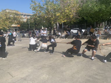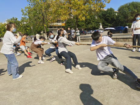 开展拔河活动。化学院在小五四广场还组织进行了班级拔河比赛的活动。同学们积极参加、热情高涨,本着”友谊第一,比赛第二”的原则,同学们加强了彼此间的联系交流,促进了感情,既放松了身心,同时也加强了学生的体育锻炼,锻炼学生的身体素质。
