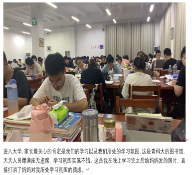 开展主题征文。同学们感受大学生活的同时,也不忘拍照记录美好的时光,青科的风景、美食、学习环境等都受到同学们的一致称赞。同学们还与家人、朋友分享自己的大学生活,通过视频聊天、电话交流,缓解了同学们的焦虑与对家人的思念,表达自己的快乐与兴奋的心情。