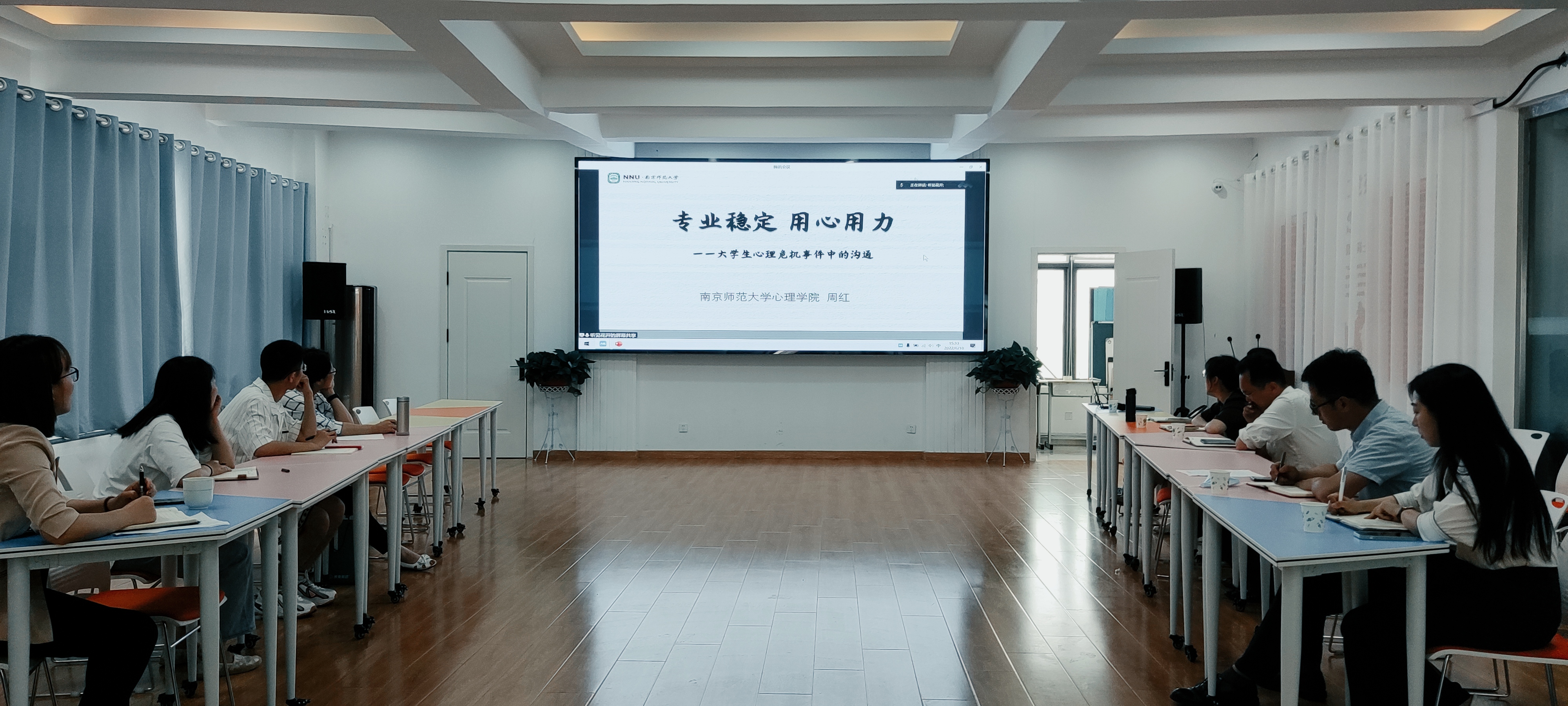周红教授从危机沟通对象、危机沟通方式、危机沟通目标、危机中的沟通、危机后管理五大方面进行了系统的讲解。培训主题鲜明、内容丰富,既有深入浅出的理论阐述,又有广征博引的案例分析,更有实践层面的对策思考。她着重强调运用积极正向方法,做到有备而来、看见每一位学生、关注每一位学生。