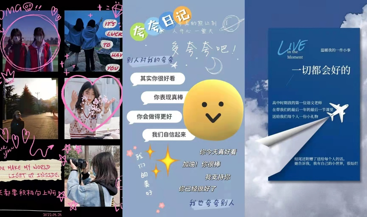 传媒学院推出卡片记回忆活动,各个专业的同学们发挥自己特长,做出一张张精美的卡片。525的谐音是“我爱我”,那些骄傲自豪的事、被受人称赞的事、帮助他人的事……记录于明信片,或是做成小卡、海报,这是对当下的肯定,更是对未来的激励。