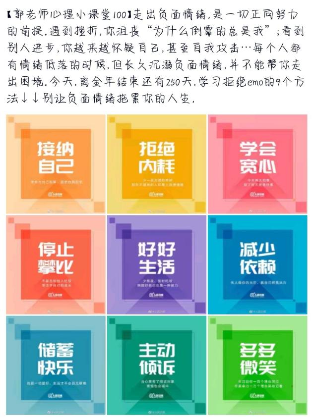 线上心理小贴士以每日心理知识推送的方式带给同学们排解消极情绪,寻找积极自我的技巧与方法,于无形中帮助同学们培养健康积极的心态。