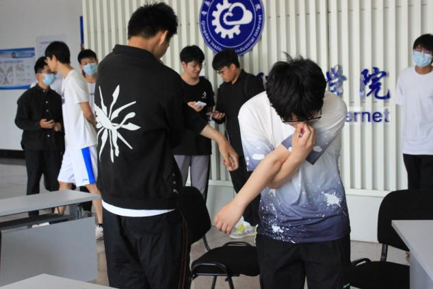 在学院楼和网球场进行的“抓住当‘夏’”趣味运动会以“寻找我的画”开始,同学们通过自我感觉寻找自己闭眼时所做的画,大部分同学成功在多张画中寻找到了自己的画,不仅收获了游戏成功的快乐也更加了解自我,认可自我。在同伴协助走出迷阵中,一组和二组同学积极配合,用极快的速度协助同伴走出了迷阵,回到了队伍之中,将信任给予团队的同时,大家都在团队协作中成为了更好的自己。在最后的撕名牌大战中,同学们齐心协力找到了“卧底”坏情绪,并成功将坏情绪“消灭”,在撕掉坏情绪名牌的同时也“撕掉”了自己内心的坏情绪。