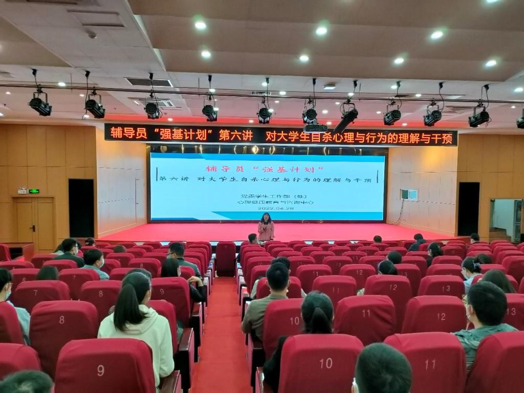 为进一步贯彻落实《高等学校学生心理健康教育指导纲要》文件精神,提高学工队伍学生心理危机干预工作水平,4月28日上午,学校邀请天津大学心理咨询中心主任杨丽教授,在崂山校区第三报告厅为各学院(校区)分管学生工作书记、专职辅导员、专兼职心理咨询师作了题为《对大学生自杀心理与行为的理解与干预》的专题报告。党委学生工作部副部长王丽参加并主持培训活动。