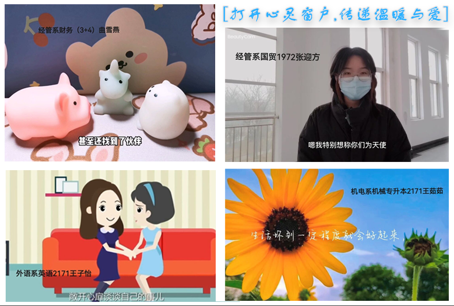 为了密切关注疫情防控期间学生的心理情绪状态,确保广大学生以理性平和、积极健康的心态应对疫情,处理好在校隔离、线上学习等一系列问题,提高学生心理健康素质,在3月20日至27日,高密校区积极开展“拥抱爱,青春正当时”3.25心理健康系列主题活动,充分保证大家在防疫期间身心健康,线上课外活动丰富有趣。