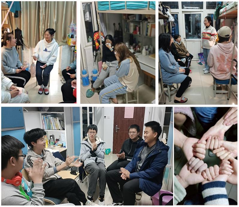 各宿舍舍长组织同学们进行活动,学生们互相倾诉自身烦恼,谈谈自封校以来做出的改变和努力,分享疫情防控以来的感受和体会。在交流之中,同学们对疫情有了新的理解,也更加团结。