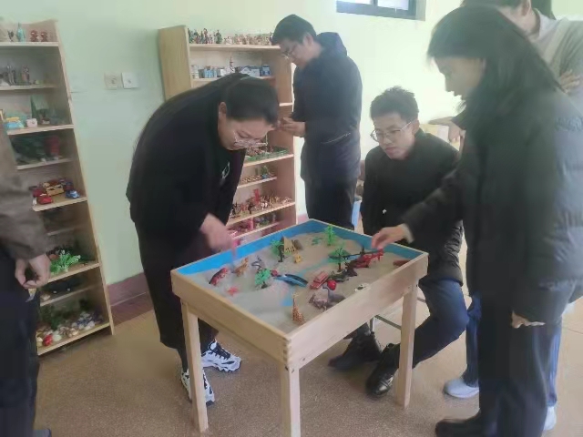 在心理沙盘区开展“沙盘体验与分享”,让辅导员参与体验心理沙盘游戏,换一种视角看待个人当前的感觉和状况,从而帮助辅导员更好地认识自我。