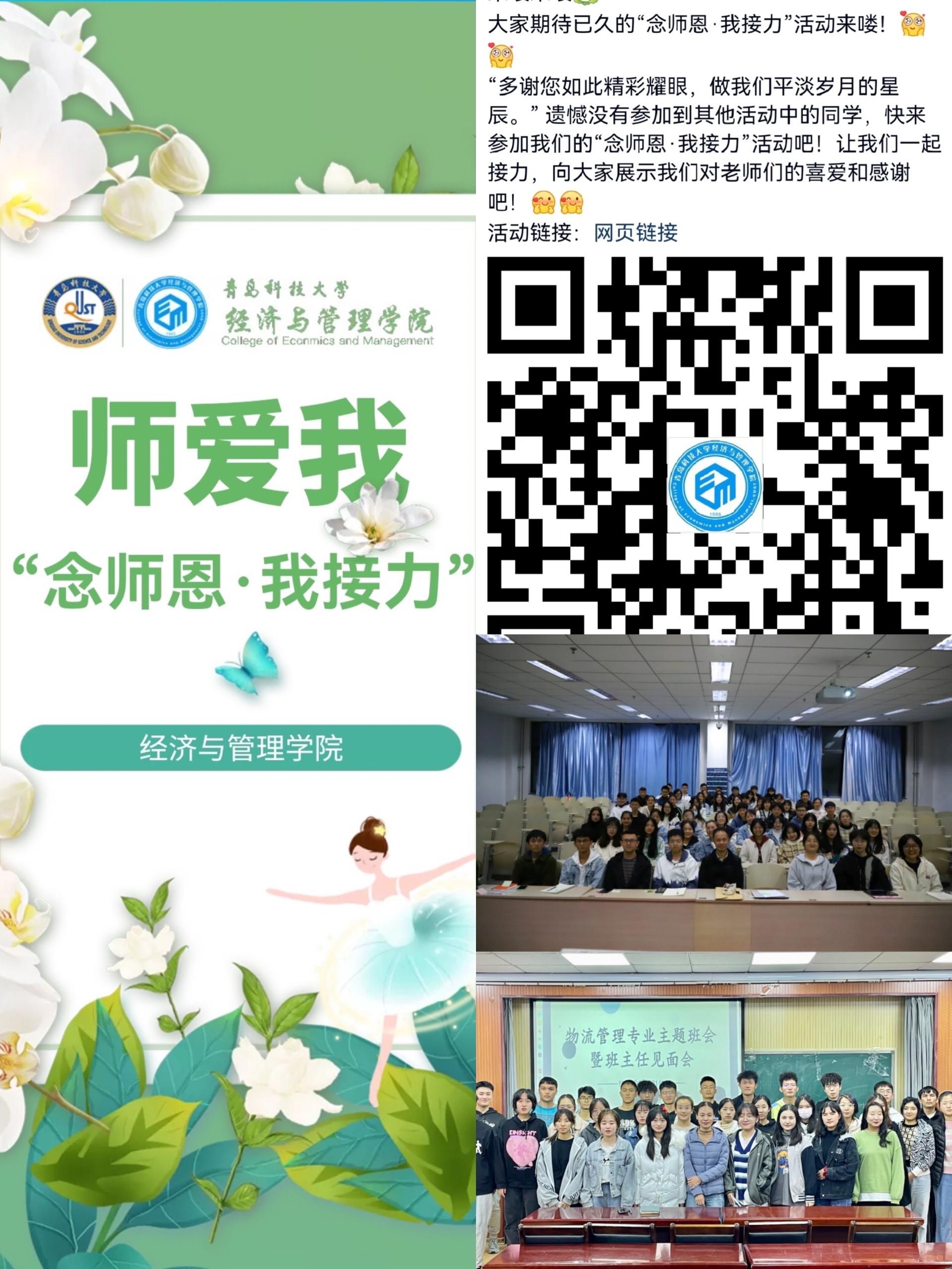浓浓尊师意、款款爱师情,经管学院广大师生积极参与到“我与老师合张影”H5接力的活动中,升华对10·25“师爱我”活动的深刻理解,贯彻全员、全程、全方位的“三全育人”工作格局,助力构建师生共同体,在全院范围内营造出师生和谐相处的良好氛围。