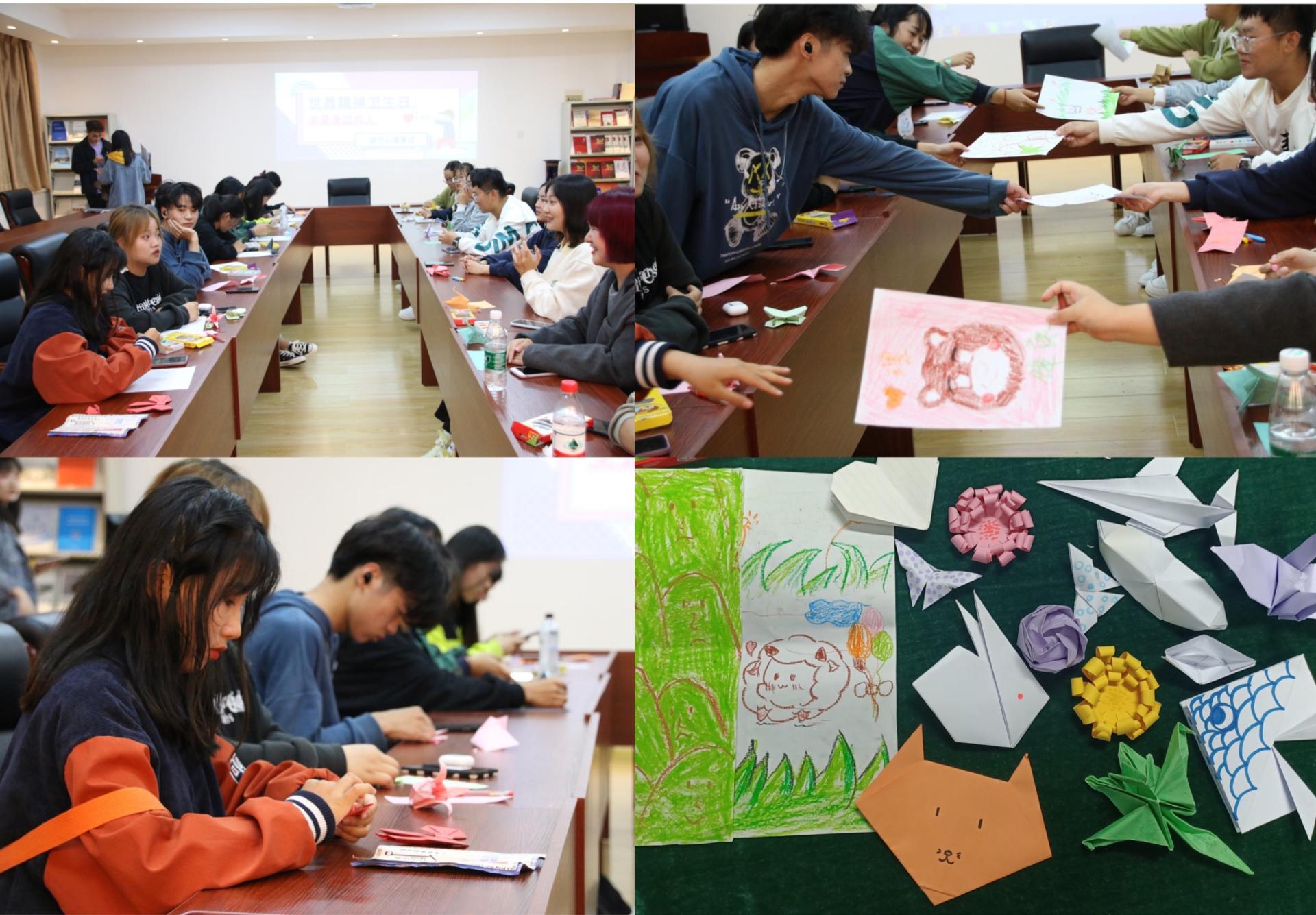 本次活动由“心灵手巧折纸卡”和“你传我接涂鸦画”两个环节组成。在活动正式开始之前,全体参会学生一同学习了关于世界精神卫生日的相关内容,了解了有关知识,组织同学一起收看健康科普大讲堂和12320卫生热线,使更多的同学认识并了解到精神卫生的相关知识,提高了他们对精神疾病的认识。提高学生对精神疾病相关知识的认识,引导同学们树立正确的健康观念、提高心理素质、维护身心健康,共同营造积极、和谐的校园氛围。