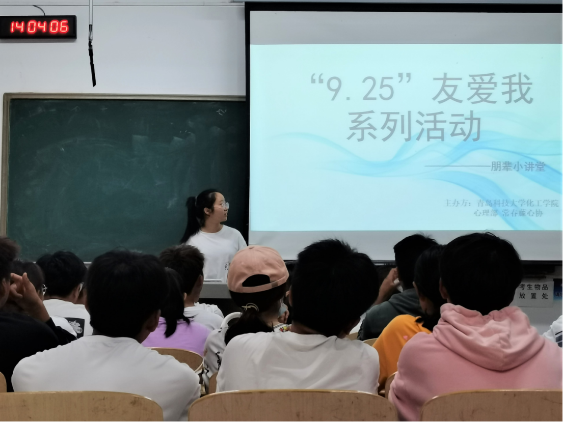 为提高学生的心理素质水平,共同建设团结友爱和谐的校园环境,9月25日下午,由化工学院心理部、“常青藤”心理健康协会主办的“9.25”友爱我系列活动于四方校区第二教学楼109教室顺利举行。