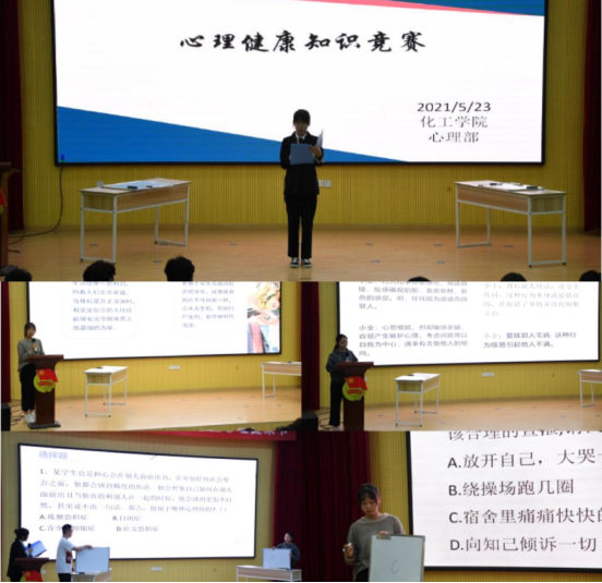 以赛促学·关注心声。为进一步提升心理育人实效,激发大学生内心成长动力,助力学生身心健康成长,化工学院举办5·25“关爱心灵·助力成长”大学生心理健康知识竞赛活动。本次竞赛分为初赛和决赛,共吸引了300余名同学积极参与。竞答问题由浅至深,涉及到心理学领域各类知识,其中既有以科普为主要目的的简单理论题,也有与同学们现实生活紧密相关的情境模拟题。以赛促学、以学促能,旨在帮助学生提高自我心理调节的能力,掌握自我排解和自我保护的方式方法。