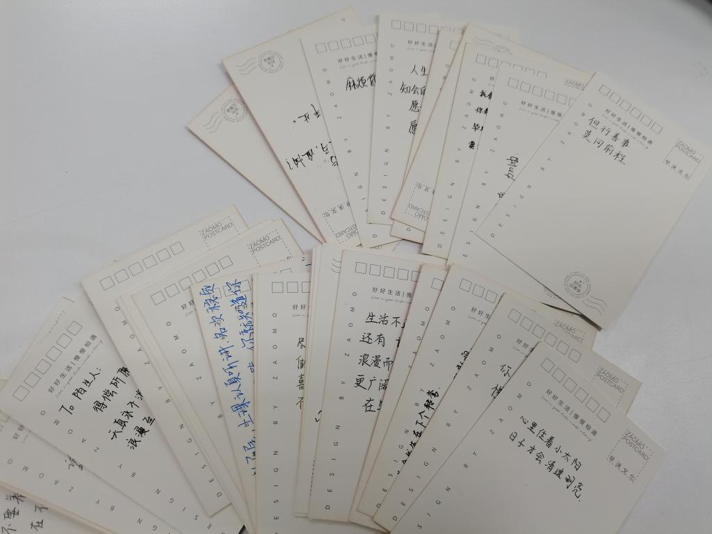 首先进行的是“心书笺”活动,权益中心干事将准备的明信片,提前发给各班心理委员,由心理委员进行下发,每位同学在明信片上写下对陌生人鼓励的话语,并由心理委员进行回收,交至学生会工作人员,再由工作人员随机分配,使每个同学都能收到一段来自陌生人的话语。