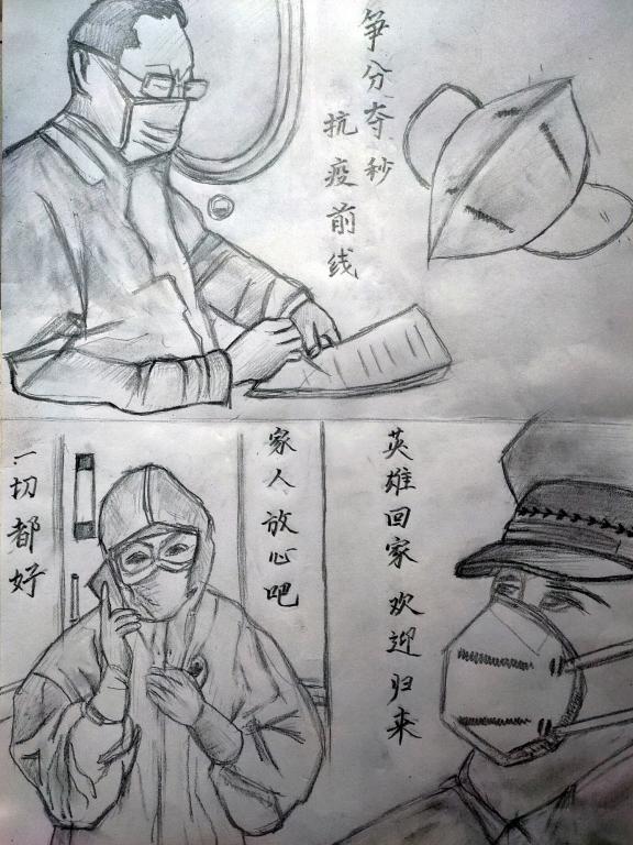“漫画以口罩兄弟们的自述展开,它们也是白衣天使、志愿者等无数抗疫英雄的缩影,希望世界各国同舟共济,期待春暖花开之日快快到来!”—环工192胡玥