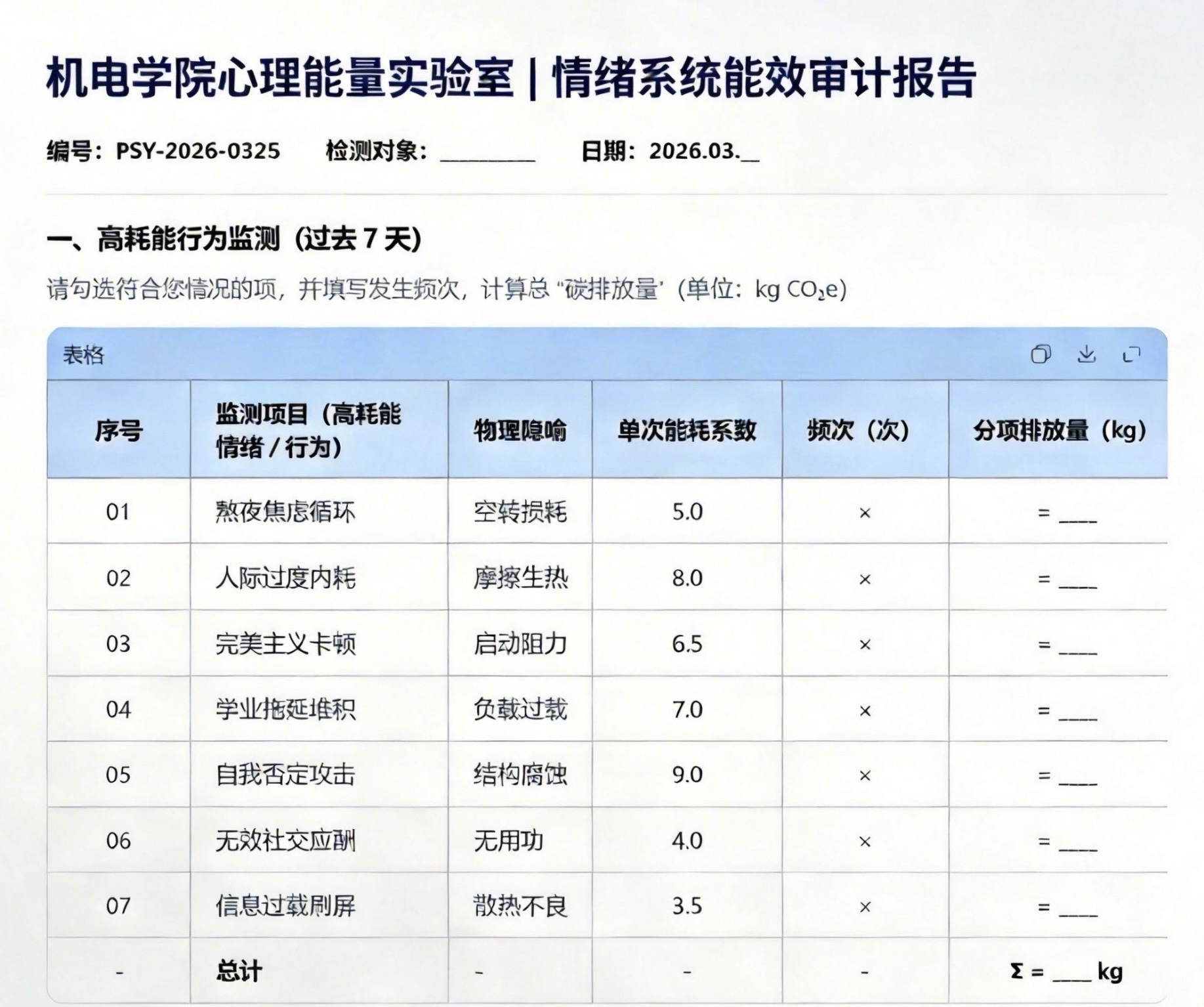 针对当前大学生在学业压力与人际交往中普遍存在的“情绪消耗”痛点,本次活动巧妙地将抽象的情绪波动转化为可量化的“碳排放量”,使用工科学生熟悉的专业术语,重构了情绪管理的认知框架。
