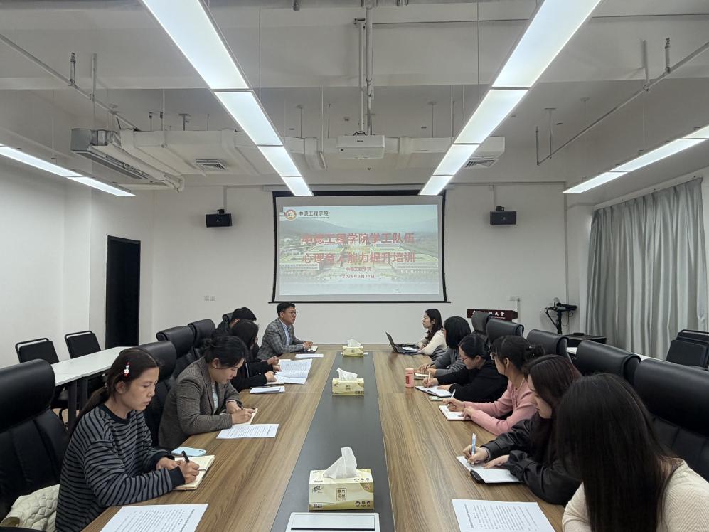 为进一步加强学院学生工作队伍建设,提升辅导员、班主任在学生心理危机识别、干预方面的专业能力,切实维护学生身心健康与校园安全稳定,3月31日下午,中德工程学院在402会议室举办了学工队伍心理育人能力提升专题培训。本次培训由学校心理健康教育与咨询中心副主任刘璐老师担任主讲,学院院长王芳、党委副书记兼副院长曲绍瑜、全体辅导员及班主任代表参加了此次培训。