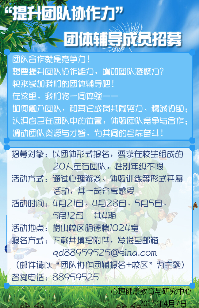 关于“提升团队协作力”团体辅导(崂山)报名的通知