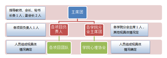 学校鼓励全校学生参与项目负责人竞选,每学年心理中心组织大学生心理健康宣传教育优秀项目评选,对优秀项目和项目负责人给予表彰奖励。项目团队由项目负责人在每年9月学校社团纳新时组建。